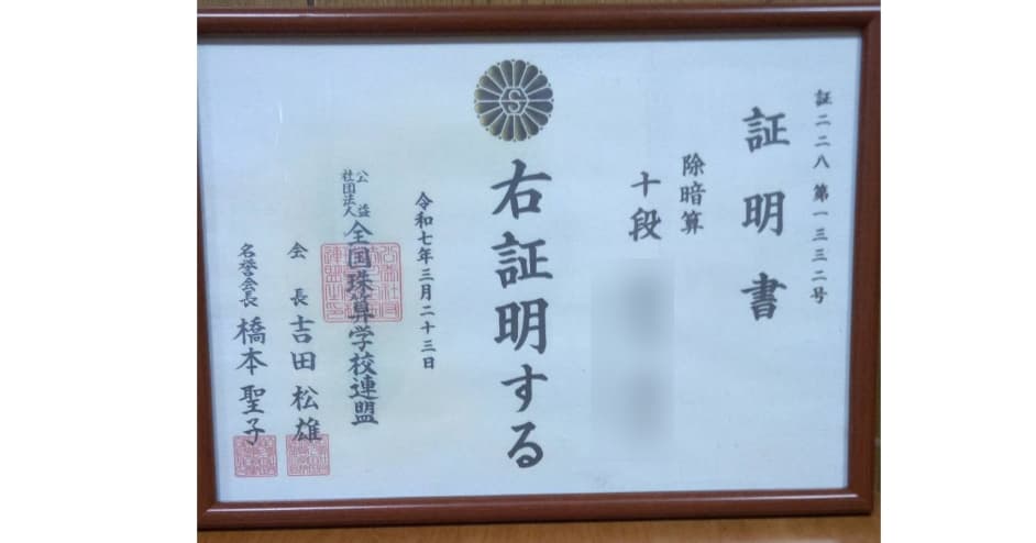 総合では珠算7段、暗算9段という異次元さ。